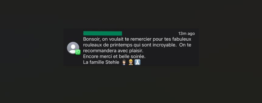 Aujourd’hui, Zyler et Emma, toutes deux étudiantes et passionnées de cuisine, décident de faire vivre cette tradition familiale. Ensemble, elles se lancent dans l’aventure de la vente de rouleaux de printemps faits maison. Inspirées par la recette traditionnelle de Marianne, elles veulent faire découvrir à tous les saveurs authentiques et la fraîcheur de cette spécialité.